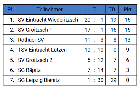 unsere Mannschaft von links: Co-Trainer Marius Baum, Jonas Adam, Lio Zetzsche, Malte Ritter, Stian Scoor, Milian Morgenstern, Connor Farkas, Benno Czastitz, Theo Moritz, Benito Theile, Trainer Matthias Moritz