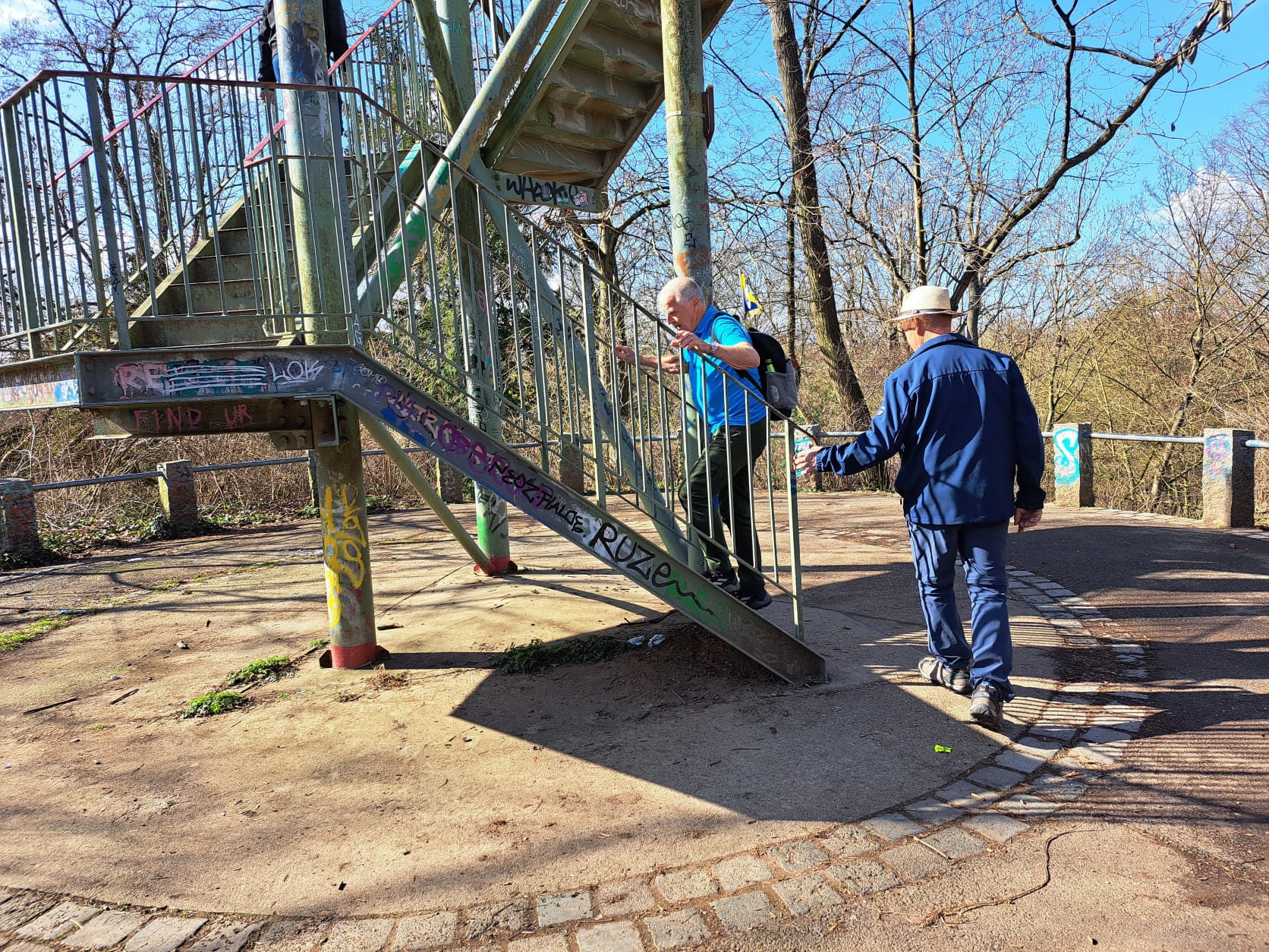 Wie kommt man hoch, steil bergauf oder gemütlich auf einen Rundweg leicht ansteigend. Rainer und ein kleiner Teil wählten den schweren Weg.