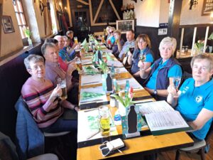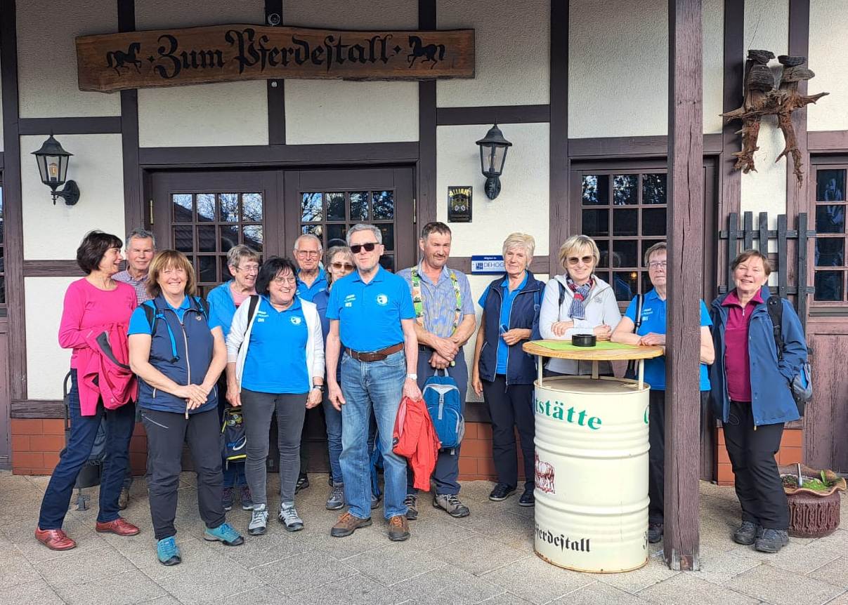 Es waren 10,1 km die wir zurück gelegt hatten. Weitere Daten waren 60 Höhenmeter, 2 Stunden 13 Minuten in Bewegung, 4,1 km/h, tolle Leistung von allen.Aber noch war der Wandertag nicht beendet, denn wie immer kehren wir nochmal ein. Rainer hatte Plätze „Gaststätte zum Pferdestall“ in Rückmarsdorf bestellt.