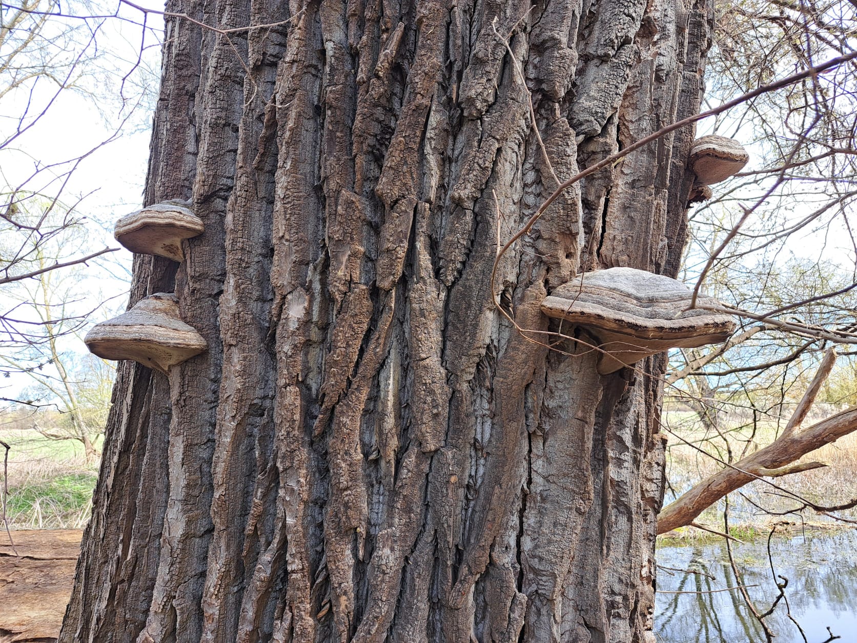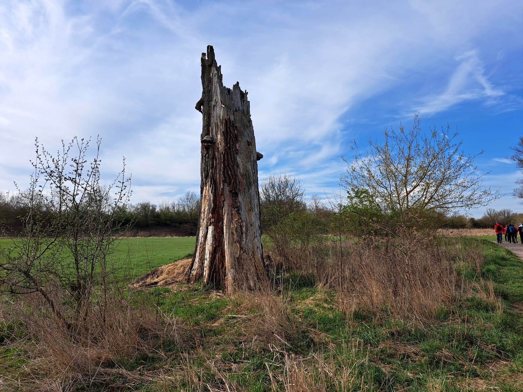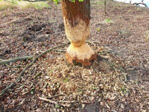 Hier wurde komplette Arbeit von Bibern geleistet. Lange wird der Baum nicht mehr stehen bleiben,