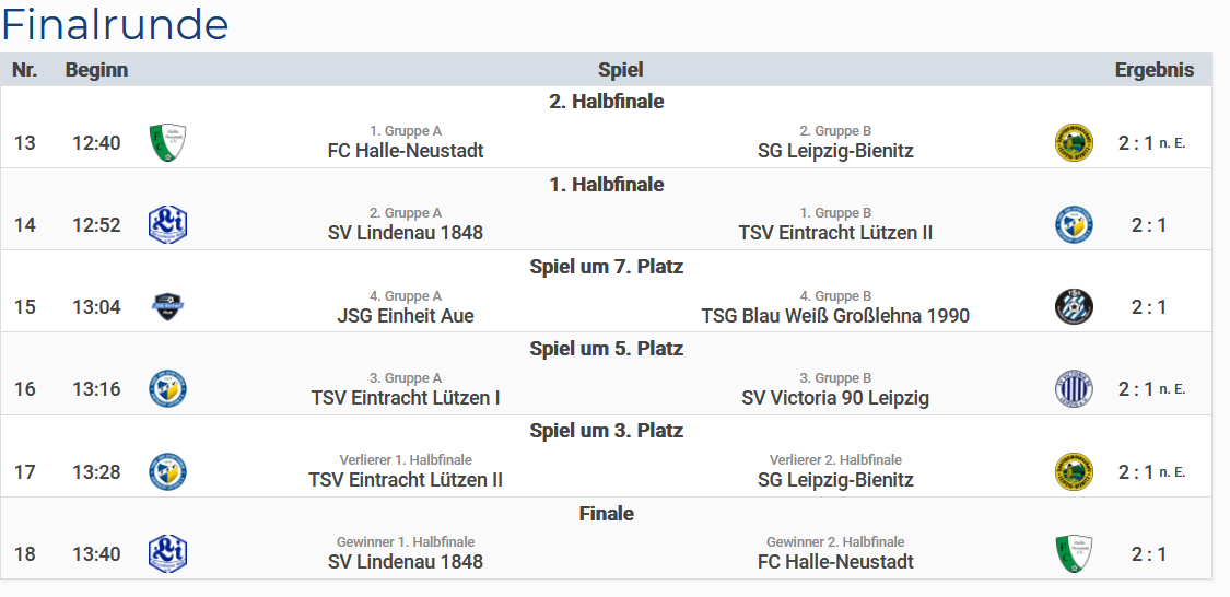 | Spiel um Platz 5 | SV Viktoria 90 Leipzig | 2:1 n.E. ✓ |