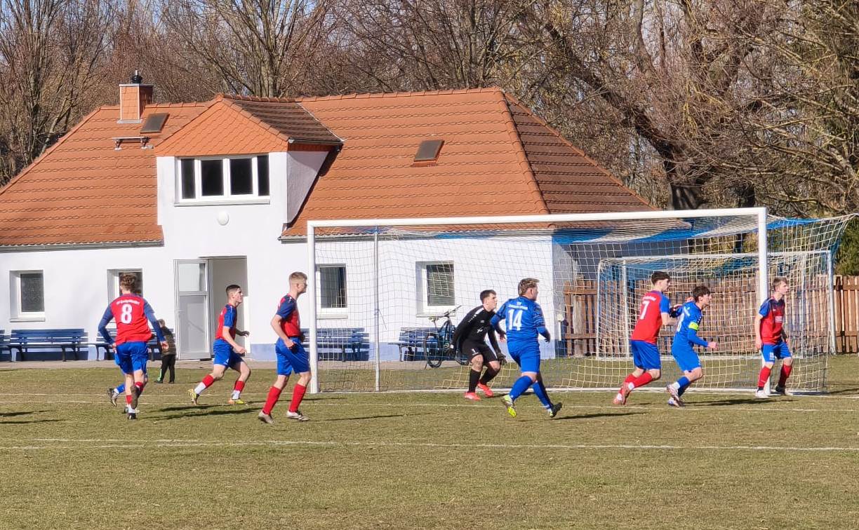Nach einem kurzen Abtasten schlug der Gastgeber bereits in der 15. Minute zu: Jonas Henze brachte den SV Großgräfendorf mit dem 1:0 in Führung und setzte den TSV Eintracht Lützen früh unter Druck. Kurz darauf musste die Mannschaft einen weiteren Rückschlag verkraften: Erik Neidhold schied in der 23. Minute aus und wurde durch Pierre Tober ersetzt. Die Umstellung kam zu früh, um zu helfen – eine Minute später erhöhten die Gastgeber durch ein unglückliches Eigentor auf 2:0. Finn-Luca Wolf (32.) und Yanic Deubel per Elfmeter (34.) sorgten noch vor der Pause für ein deutliches 4:0 und stellten die Weichen klar auf Niederlage.